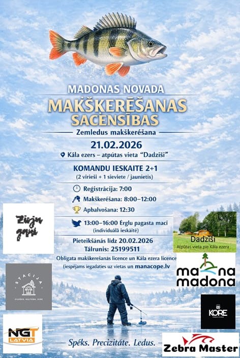 Vairāk informācijas un nolikums zemledus makšķerēšanas sacensībām Ērgļos: https://madona.lv/lat/sporta-aktualitates?fu=read&id=15658